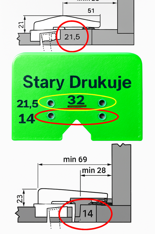 ✅Drugi otwór 21.5 mm od krawędzi pyty