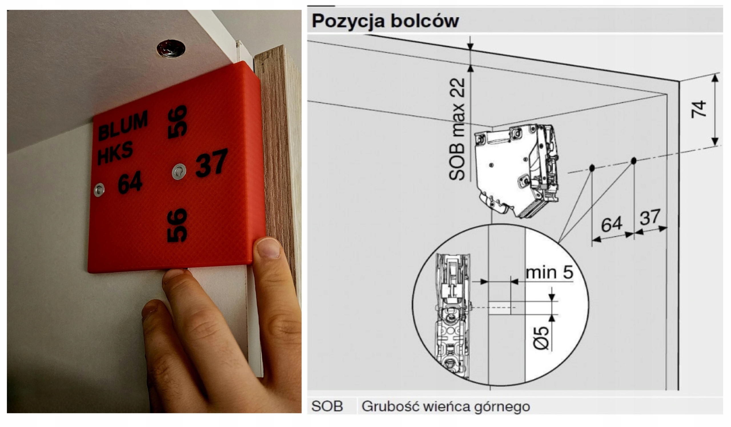 Przymiar do wiercenia pod BLUM HK-S FRONT